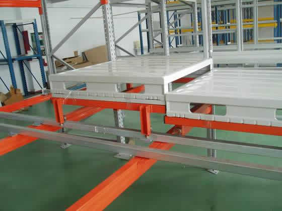 此類系統(tǒng)對貨架的制造精度要求較高,托盤小車與導軌間的配合尤為重要,如制造、安裝精度不高,極易導致貨架系統(tǒng)的運行不暢。此類貨架造價較高,非常適用于冷庫或存儲區(qū)域有限但急需增加儲位面積的場合使用,在國內(nèi)已有很多的應用。在國內(nèi)只有一定規(guī)模的貨架廠商生產(chǎn)此類貨架。